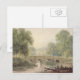 Carte Postale Paysage en bois avec pont de pierre au-dessus d'un