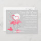 Un couple de flamants roses avec des cous courbés pour former un cœur se tiennent dans la mer sur une plage au clair de lune. Un design élégant et romantique avec une touche rétro créé dans une palette de couleurs rose, gris et blanc avec un fond changeant de couleur. Un design personnalisable pour que vous puissiez le personnaliser avec votre propre texte, vos images et vos idées. Une image d'art numérique originale.