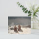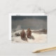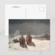 Une carte postale d'art avec la peinture, En dessous de zéro (1894), de Winslow Homer (1836-1910). Un paysage hivernal enneigé avec un ciel sombre et orageux. Deux hommes en parkas de fourrure avec leurs raquettes regardent au loin.