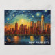 N'importe qui serait ravi de recevoir cette carte postale de voyage représentant une illustration d'une nuit étoilée sur le paysage urbain de New York !