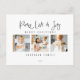 Le design à l'avant consiste en une typographie cursive et ludique de "Paix, Amour et Joy Joyeux Noël". Ajoutez une photo personnalisée de votre famille et ajoutez le nom de famille et l'année. Ce design est moderne, chic, ludique et amusant.