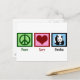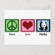 Adorable ours de panda dans un carré bleu à côté d'un signe vert de paix et d'un coeur rouge. J'adore cette jolie carte postale de panda de Noël. Belle carte d'animal.