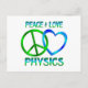 Laissez ce design ludique bleu et vert brillant avec un coeur, signe de paix et les mots - Peace Love Physics - aider à partager la joie de la physique. Super pour un professeur de physique.