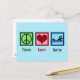 Cartes postales de mignonette Peace Love Swim pour une compagnie d'enseignement de natation pour envoyer de la publicité pour des cours de natation ou des maîtres-nageurs Customiser ces cartes de nageur cool pour votre entraîneur de natation ou les membres de votre équipe de nage compétitive. J'adore les chemises de natation cool.