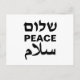 Carte Postale Peace Shalom Salaam typographie blanche et noire