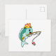 Carte Postale Pêche au poisson avec canne à pêche et chapeau