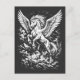 A rearing Pegasus carved in stark black‑and‑white ink, wings flared, mane whipped by unseen winds. The creature rises from a churn of storm‑swirl and cloud‑spiral, a messenger between sky and earth.
