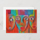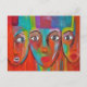 Cette carte postale personnalisée présente un tableau à l'huile contemporain représentant trois visages de femmes africaines vibramment peints dans des textures de brosse colorées.