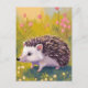 Carte Postale Peinture d'animal de champ floral de hérisson