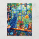 Carte Postale Peinture de chat sur le rebord de fenêtre de la ma