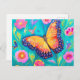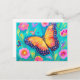 Carte Postale Peinture d'un papillon dans un champ de fleurs