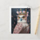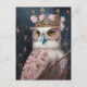 Carte Postale Peinture d'une chouette avec couronne et fleurs ro