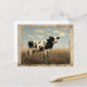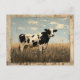 Carte Postale Peinture rustique d'une vache dans une prairie écl