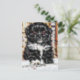Un chien mignon vous regardant avec ses yeux rouge vif debout sur un rail le chiot un Pekingese noir et blanc puppy appelé peter