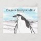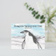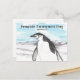 A postcard in honor of Penguin Awareness Day on January 20 featuring a penguin in a wintery snow-covered landscape hand drawn with pencils. This day is for learning more about penguins, their environment, how they live and what can contribute to their health and wellbeing.