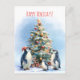 Carte Postale Penguin family joyfully decorating a Christmas tre