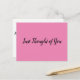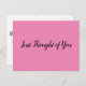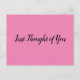 Carte postale élégante mais simple pour ces moments où vous avez une pensée fugace pour quelqu'un et que vous voulez les en informer 'rapidement'. Un appel téléphonique fera certainement l'affaire, mais ce souvenir spécial dure aussi longtemps que le souhaite le destinataire. Faites savoir à quelqu'un que vous pensez à lui ! Il y a de nombreuses couleurs et une variété de messages parmi lesquels choisir.