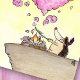 Un petit hérisson mignon fait un grand signal de fumée en forme de cœur rose.