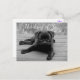 Qui peut résister au visage mignon d'un chiot Carlin ? Cette carte postale présente une photo en noir et blanc d'un chiot en carlin noir reposant sur une véranda. Les cartes postales sont l'alternative économique à une carte de voeux quand vous voulez faire savoir à quelqu'un que vous pensez d'eux. chiot, chiots carlins, chiot carlin, penser à vous, vous manquez, votre spécial, amitié, chiots carlins, chiot en carlin noir, chiots en carlin noir