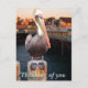 Carte "Pensez à vous" avec une photo d'un pélican devant. J'ai pris cette photo au Redondo Beach Pier 2008.