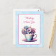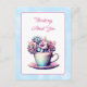 Faites savoir à un ami que vous pensez à eux ou que vous les manquez avec cette jolie carte. Tasse-thé antique vintage remplie de fleurs violettes, roses et bleues. L'IA est un contenu génératif artistique.
