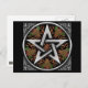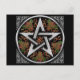 Pentagramme celtique artistique en métal argenté poli. Dragons respirant le feu en rouge et vert. Défilement d'angle complexe. Un don élégant pour les Wiccans, les Pagans, adeptes des religions de la terre.