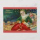 Carte Postale Père Noël à l'ancienne en vert et fourrure à Sleig