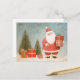 Cette illustration fantaisiste du Père Noël avec des sapins de Noël et des cadeaux emballés est imprimée sur une carte postale. Graphisme assisté par IA acheté pour une utilisation commerciale. Œuvre : DelightfulDigiArt