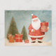Carte Postale Père Noël fantaisiste avec sapin de Noël et cadeau