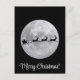 Carte Postale Père Noël Lune Noire et Blanche avec rennes