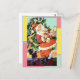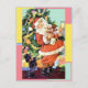 Carte Postale Père Noël rétro, biscuits et lait, et caniche dans