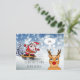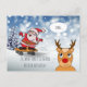 Carte Postale Père Noël sur skateboard drôle de rennes traîneau
