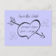Un simple coeur de style calligraphie noire douce et une police élégante sur un arrière - plan bleu périwinkle et les couples heureux noms et datent à l'intérieur d'un coeur romantique avec la flèche de cupid à travers elle. Facile à customiser, il suffit d'ajouter vos propres détails.