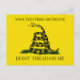 Ne me tournez pas dessus ! Cette carte postale personnalisable attire l'oeil et présente le design historique du drapeau de Gadsden de 1775. Le drapeau a un serpent enroulé sur un riche arrière - plan jaune doré avec le texte "Ne pas me rouler dessus" en bas. Le côté inverse de la carte postale est gris clair par défaut. Il y a un endroit pour ajouter votre propre texte en haut si vous le souhaitez. Il suffit d'appuyer sur le bouton Personnaliser pour modifier ou supprimer le texte, ou d'appuyer sur le bouton Personnaliser pour modifier la police, la couleur du texte ou la couleur inverse. Le drapeau était à l'origine associé aux Continental Marines, la force d'infanterie navale des colonies américaines. Dans les temps modernes, le drapeau est parfois associé au patriotisme américain, à la politique, au désaccord sur la portée excessive du gouvernement ou au soutien aux libertés civiles. Parfait pour un cadeau pour les amoureux et les défenseurs de la liberté, de la liberté et de nos droits. Super article pour les fans de drapeaux historiques, USA, symboles de la Révolution Américaine, et des motifs patriotiques américains.