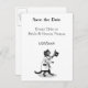 Une carte postale personnalisée de save the date avec des lettres vintage et un dessin à la plume et à l'encre noire et blanche d'un chat portant des lunettes et un manteau inclinant son chapeau haut de forme. Cliquez sur Personnaliser pour changer les polices, la taille, télécharger votre propre photo et plus encore, même enregistrer votre conception pour plus tard.