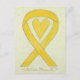 L'imprimé de carte postale présente l'image d'un ruban de sensibilisation au coeur jaune. Ajoutez vos propres mots ou messages optionnels à la carte postale pour des cartes d'art ruban personnalisées ! Vous pouvez également supprimer le texte d'une impression par carte postale uniquement. Le ruban jaune de sensibilisation montre le soutien au cancer de l'os ou à l'ostéosarcome, le soutien au retour de nos troupes / forces armées, MIA/POW, la prévention du suicide, l'endométriose, le cancer de la vessie, les parents adoptifs, l'acceptation craniofaciale, et spina bifida plus. Les cartes postales à ruban de sensibilisation au coeur jaune peuvent être customisées de messages personnalisés pour créer des images ou des images de cause de sensibilisation pour les collecteurs de fonds, les cadeaux de sensibilisation ou d'autres événements spéciaux. Offrez cet art comme un ruban de sensibilisation pour toute occasion.