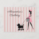 Personnalisez et ajoutez le nom et l'événement ou l'occasion à ce design d'une dame vintage tout habillée en rose promenant un mignon caniche noir