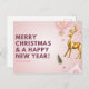 Carte postale personnalisée rose joyeux Noël et Bonne année de voeux design.