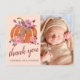 Express vos remerciements à la famille et aux amis pour leur amour et leur soutien pendant votre grossesse et envoyer des cartes de remerciement avec cette douce petite carte postale de citrouille merci comprend un endroit pour écrire une note personnelle, préimprimer votre adresse de retour et partager une photo de votre nouveau bébé. Cette décoration est composée d'un citrouille d'aquarelle décoré de beaux floraux d'automne en rouge et rose. Parfait pour un baby shower d'automne pour une fille ou un garçon.