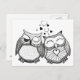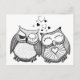 Petit hibou couple Scribble, hibou amoureux des coeurs. dessin au crayon illustration.