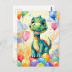 Carte Postale Petit dinosaure mignon avec beaucoup de ballons co