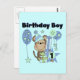 Un singe-garçon entouré d'étoiles, de ballons, de cadeaux d'anniversaire et d'un texte qui dit "Anniversaire garçon 1" sur les t-shirts, costumes, sacs fourre-tout, autocollants, cartes et plus encore.