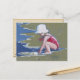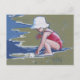 Carte Postale Petite fille avec casquette sur la plage avec vagu