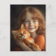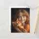 CARTE POSTALE PETITE FILLE & CHAT ROUX
