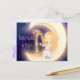 Une mignonne fille magique jouant de la harpe sur la lune. Autour, croissant des notes de musique. une carte d'anniversaire, vous pouvez ajuster le texte à votre propre ou le supprimer en laissant le coque vide