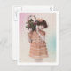Carte Postale Petite Fille Rétro Avec Robe Orange