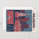 Illustration vectorielle audacieuse de la ligne d'horizon de Philadelphie, avec des monuments historiques emblématiques comme Independence Hall et Liberty Bell, sur fond de bâtiments urbains modernes. Le mot "PHILADELPHIE" est affiché en haut, ce qui illustre la richesse historique de la ville.
