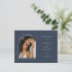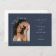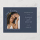 Cette sauvegarde de la date fiançailles invitation carte postale dispose d'une calligraphie élégante et une police de typographie simple avec un titre en forme d'arc et une photo sur un arrière - plan bleu marine et QR Code. La simplicité de ce design ajoute une touche d'élégance à votre mariage, à l'exception des cartes d'invitation à la date. Il fonctionne bien avec de nombreux thèmes mariages et certainement un grand ajout à votre mariage. Il suffit de customiser les noms et le libellé en quelques étapes simples et personnaliser la carte postale de l'invitation avec votre photo du couple heureux et remplacer le code QR par le vôtre sur le dos pour donner à votre carte postale une touche personnelle agréable. Remarque : Le libellé en forme d'arc de "Save the Date" et l'élégant script de calligraphie de "and" et le libellé de "Formal Invitation à suivre" sur le devant ET "save the date" sur le dos avec les lignes sur le devant et le dos et d'autres éléments d'illustration graphique ne peuvent pas être modifiés, déplacés, ou supprimés, Ils sont corrigés.