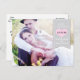 Carte postale PHOTO Bannière grise et rose ENREGISTRER LA DATE. Personnalisez votre propre photo et tout texte.