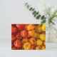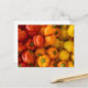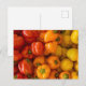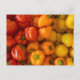 Cette carte postale présente une photo de poivrons rouges, orange et jaunes.